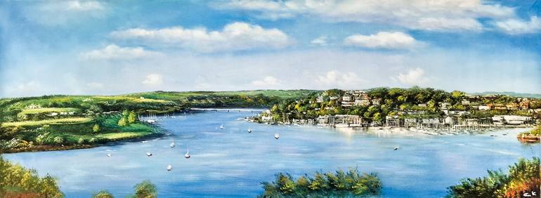 This is an original, one-of-a-kind oil painting by Irish artist Conor Kelly. In this panoramic view of Kinsale Harbour in County Cork, Conor captures the beauty of Ireland’s southern coastline. Measuring 47 × 18 inches, the wide format invites the viewer to follow the curve of the harbor, from the ...