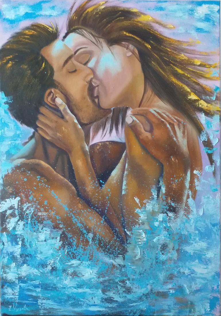 --- “Kiss of the Waves” This figurative oil painting captures a moment of passion and unity — when emotion transcends time and space. Surrounded by the splashes of the sea and the glow of the sunset, the couple becomes part of the rhythm of water and wind. The contrast between warm skin tones and c...