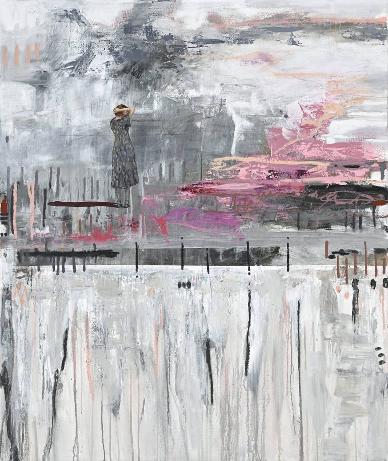 I love to place the human figure in vast, colorful semi-abstract landscapes. In some works my figures are depicted as an outline which has been filled in with various colors and shapes - as if the human form is a 'container' - of emotions, thoughts, memories. In other works, there is a more realisti...