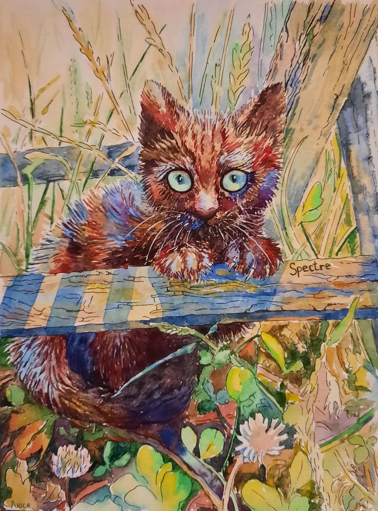 Pretty kitten named Spectre living in Ireland, as well as this my artwork living there now too.