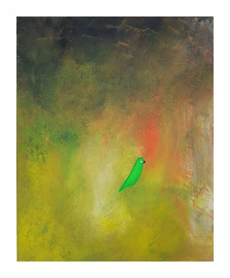 A poetic, almost mystic feeling of perdition. The bird symbolizing freedom, discovery. Green to mean freshness, hope, rebirth, re-bird.