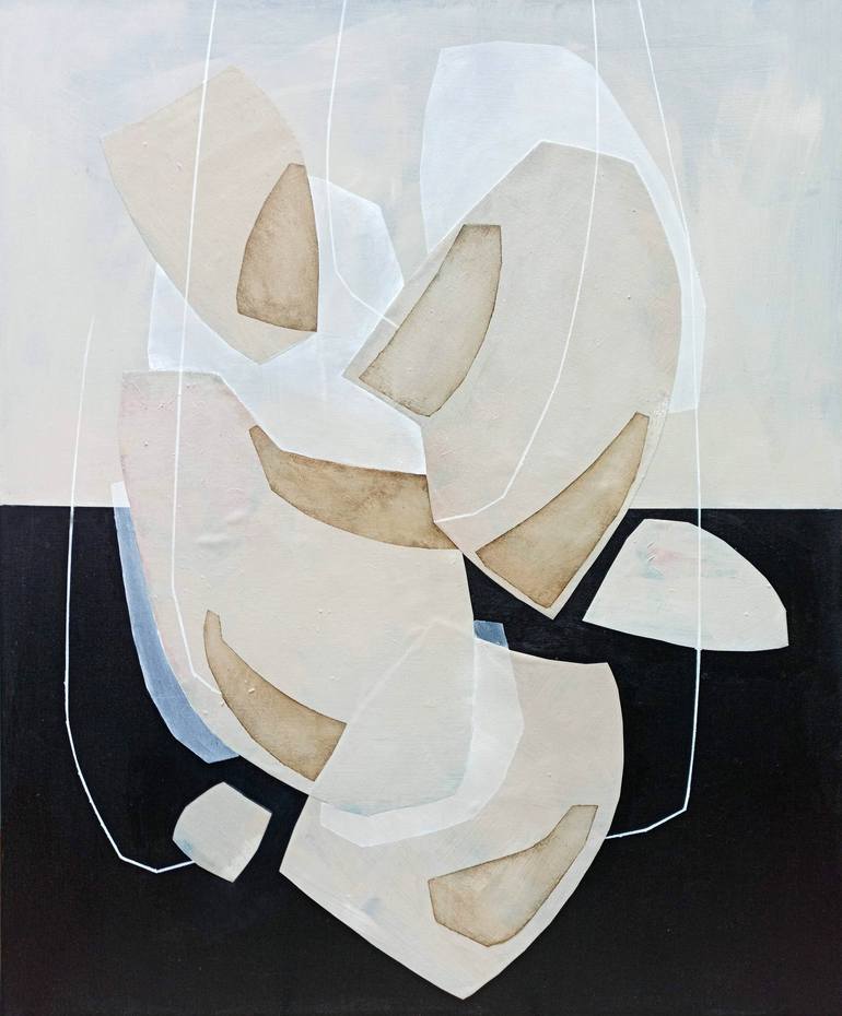 In this captivating artwork titled "Ear," the artist explores a dichotomy of elements, skillfully blending acrylic on canvas with the added texture of collage. The canvas is purposefully divided into two halves – a deep, enigmatic black at the bottom and a radiant, light-filled expanse at the top. T...