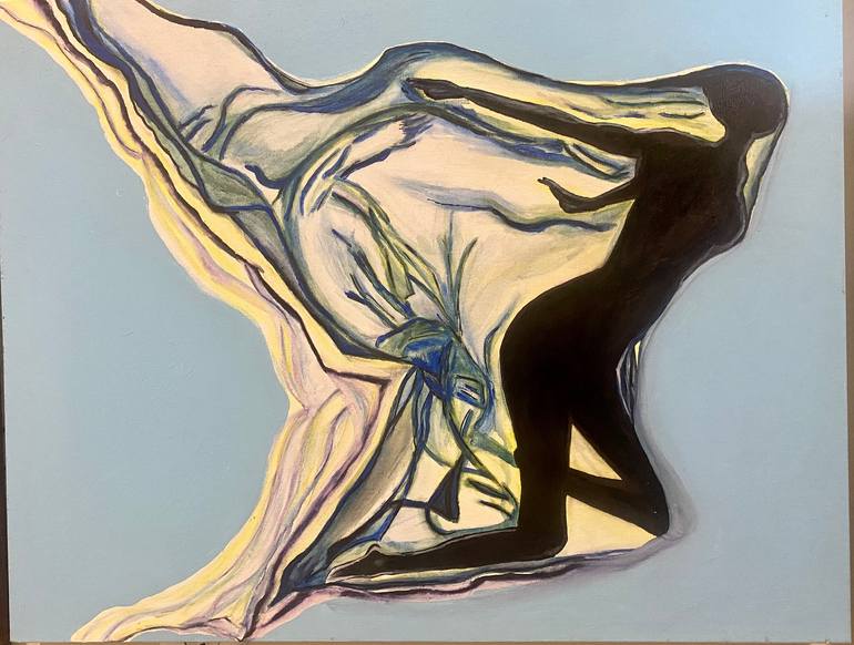 The first in my series of “The Spirit of Ecstasy” “Kneeling spirit 1934” 20x24” About my Art: White background, dark female figure. Her transparent aura signifies her light spirit. . Her spirit is captured as she kneels. Its in those brief moments while she kneels down to the vastness of creat...