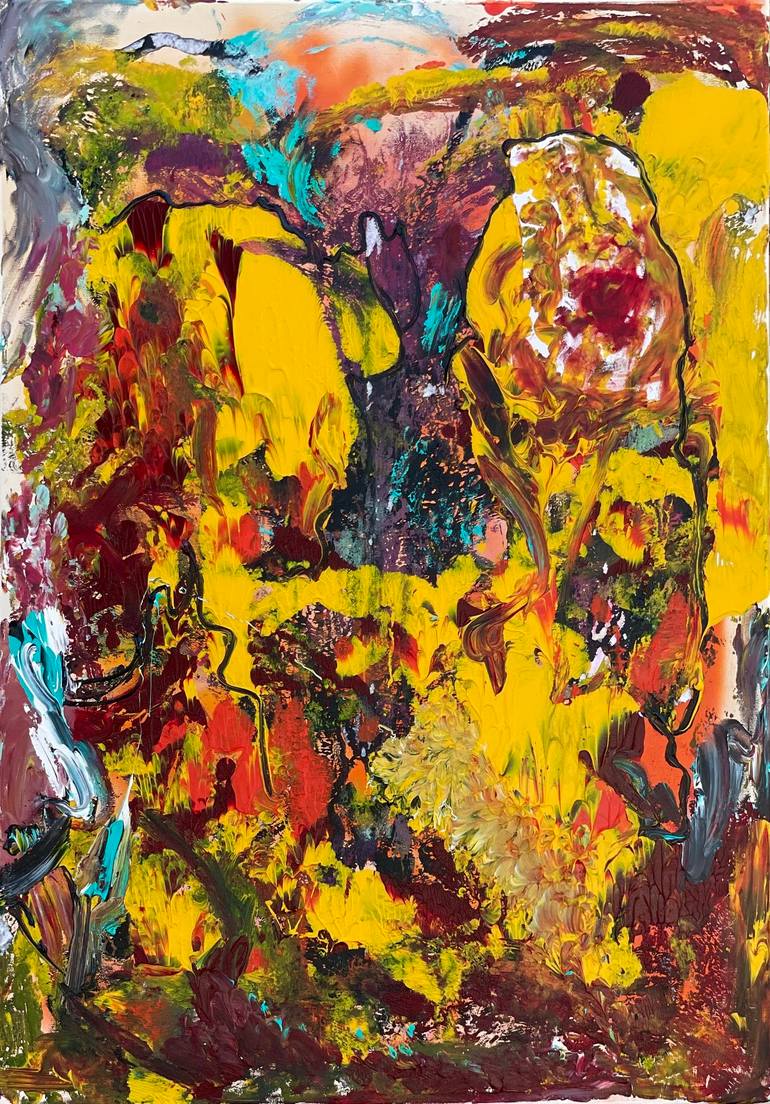 Mediya Al Matroshy is an Emirati contemporary artist born in London and she paints music. As a person with synesthesia, a condition characterised by the blending of multiple senses, Mediya hears the sound of colors and sees the notes of music. In her abstract works, music is not merely a muse, rather Mediya evokes rhythms & notes on the canvas, making her connection to music a deeply central & spiritual part of her work. The melody of the songs that Mediya listens to is translated into colors, shapes, and textures, and the energy that music evokes becomes brushstrokes on the canvas. “It is that connection that I seek with something much bigger than me which I’m striving to connect to primarily,” she writes, adding that, “the song is the mediator & the painting becomes the intuitive expression of that which I see and feel. Each art piece is a song, and that is how they are titled,” Mediya explains.
