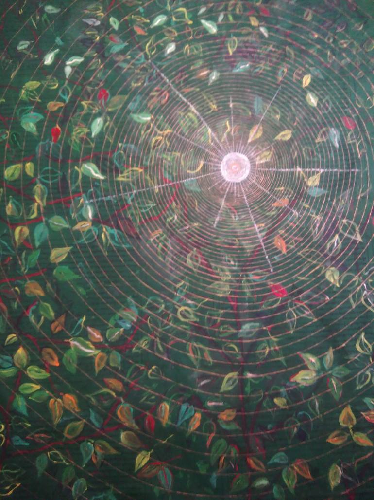 I paint the lines and circles as a representation of the energy of whatever I am painting with my own perspective . My works are my own energy, either my inner peace or my inner turmoil, expressed in color, line, light and space.