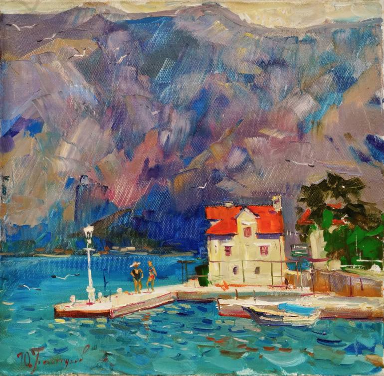 Original oil painting full of rich and yummy textures by artist Yuliia Pastukhova "Kotor" 50 X 50 CM Canvas, oil Signed on the front and back Dated 2015 Good condition All photos are relevant, so you buy what you see in the photo. Please note on the detail of the image, there are visible all the ...