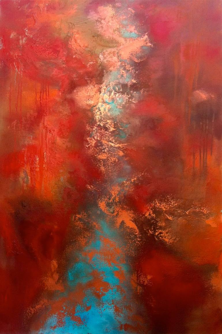 I start each session of painting by holding up tubes of paint close to my eyes, as if to drown in them. Color speaks to me, moves me, and is my muse. It's like a language for me. Painting over gold leaf is a luxurious adventure. I thouroghly enjoy mixing and watching each color change from the canva...