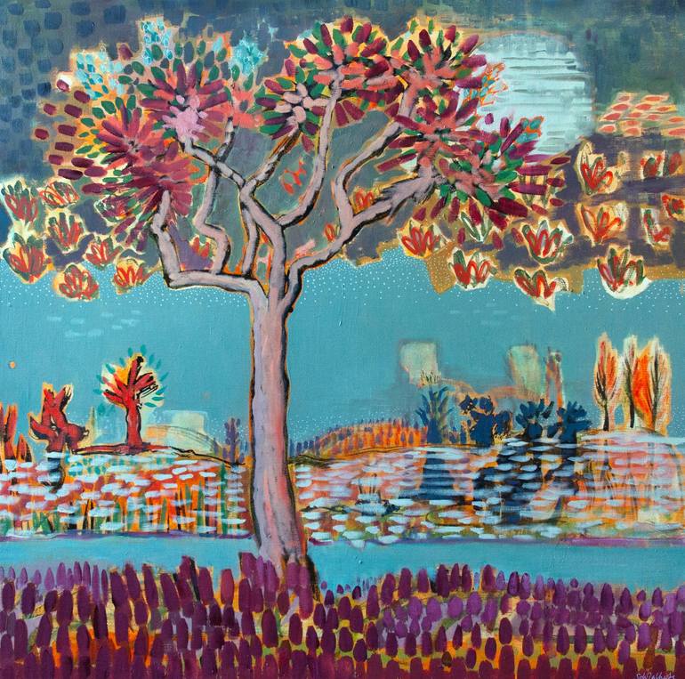 this painting is part of a series called "L'Horizon des possibles", inspired by places I lived, in France Mexico and spain and becoming a combined landscape beetween reality and dream, with a glimpse of hope and poetry