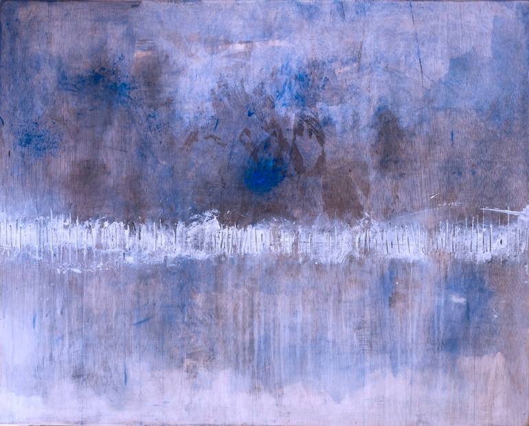 Mixed-media painting on wood Abstract painting . Delicate colors blue and white. Environment and nature inspire me. Material, color and composition, a perpetual challenge to create something new . Always with a poetic look at nature, organic materials, and compositions that suggest landscapes. Timbe...
