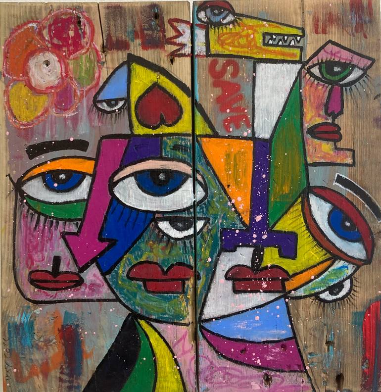 Après un premier parcours professionnel en tant que commercial, puis une reconversion en décoration d’intérieur, c’est en 2017 qu’un tournant décisif s’opère : la rencontre avec un graffeur ouvre un nouveau champ d’expression, celui de la peinture. Dès lors, l’art devient un langage vital. Loin d’une trajectoire linéaire, le travail de l’artiste s’est construit dans une forme d’ébullition constante, entre recherche plastique et exploration intime. Son médium de prédilection est le stick à l’huile, matière épaisse, brute, presque sauvage, qu’il applique au doigt, au plus près de la matière. Se salir les mains n’est pas un accident, mais un acte nécessaire : « Plus je suis plongé dans la matière, plus je me sens vivant. » Portée par l’instinct mais jamais gratuite, sa peinture se structure autour d’un vocabulaire graphique singulier. Une figure récurrente petite tête, clown triste ou monstre — s’est imposée au fil du temps. Elle devient une signature, un témoin silencieux, un double intérieur. Les visages qu’il peint racontent des tensions : entre le sage et le trash, entre l’éducation et l’instinct, entre l’humain et l’exorbité. L’artiste travaille sur la charge émotionnelle des contrastes un œil qui regarde, l’autre qui fuit ; une bouche figée ou déformée pour mieux sonder ce qui se joue derrière le masque. À travers ses œuvres, il ne cherche pas à plaire, mais à faire ressentir. Car « peindre, c’est comme crier ou pleurer ». Sa démarche est à la fois introspective et cathartique, et chaque toile devient un miroir tendu au spectateur, une invitation à aller plus loin que l’image : « Regarde-moi au plus profond… et maintenant, qu’est-ce que tu ressens vraiment ? »