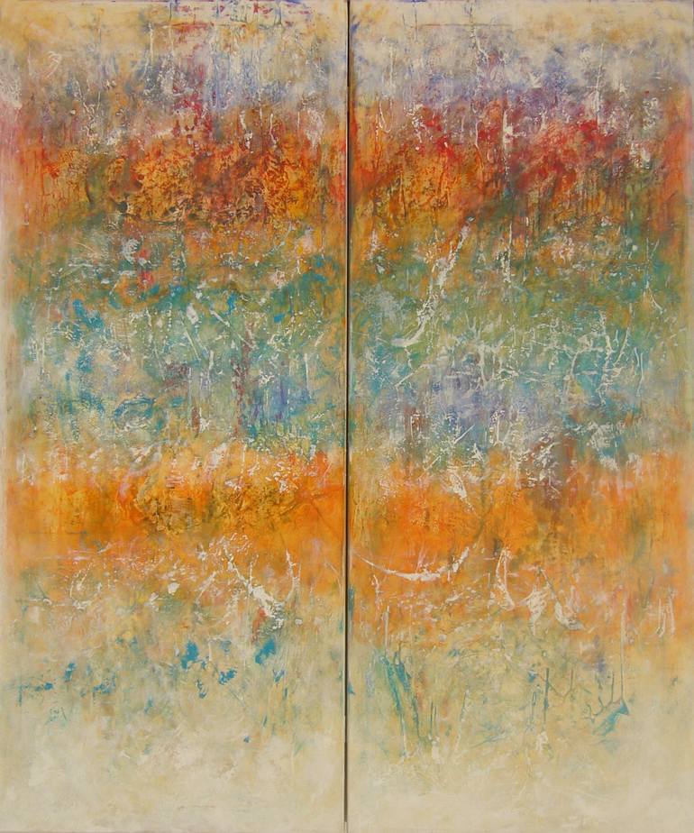 THE MEDITERRENEAN LIGHT - POWERFULL COLOR PAINTING - diptych I tried to capture the colors and the light that sourround me on this mediterrenean Island, were I live. I am so happy to be able to stay at this place, having the sea close to me. I think this painting transmits this feeling. This paint...