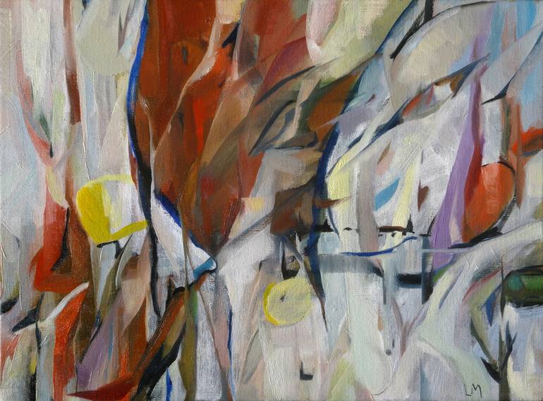 This is an expressive abstract painting reflecting the broad spectrum of emotions. It varies between viewers; and dependent mostly on the mood every approach brings new impressions.