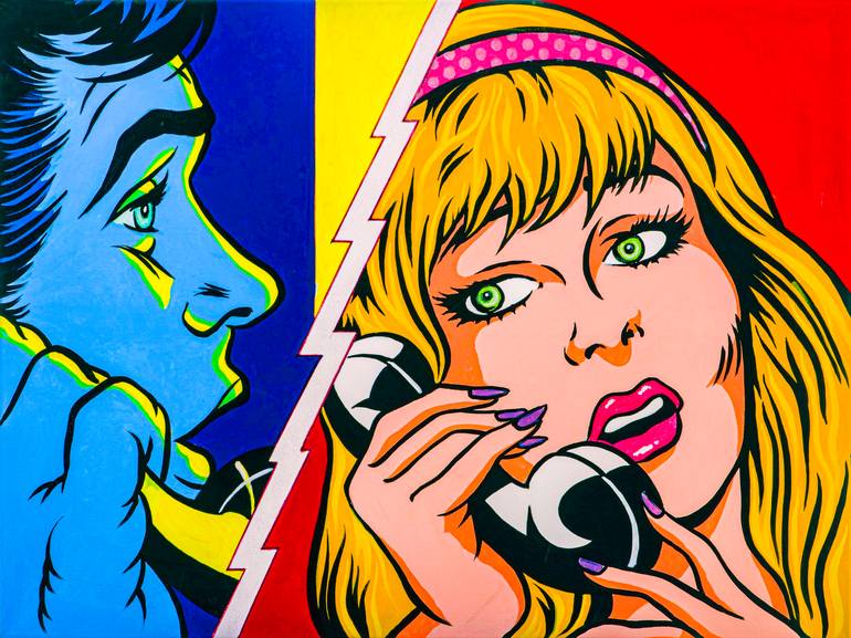 LOVE TALK | POP ART Original acrylic paint on Canvas | 2018 Original acrylic painting typical of Comic Romance, a style that had its peak in the middle of the last century. I collect many comics and this one seemed novel to paint. The original drawing has that special line of the cartoonists of...