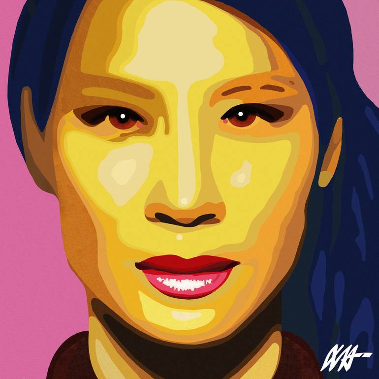 A modern Pop Art painting it is part of an investigative portrait series exploring the human face where the Artist is intrigued by how a face can be a powerful identifier, especially in the context of standard identification. This piece pays homage to actresses who embody heroic roles, celebrating...