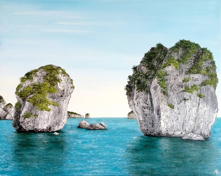 Inspired by a trip to Vietnam, beautiful weather sailing on a wooden boat in the Halong Bay... * Texture : knife painted * The sides of the artwork are painted * Ready to hang * Delivered with Certificate of Authenticity * Handmade with love in Provence, south of France