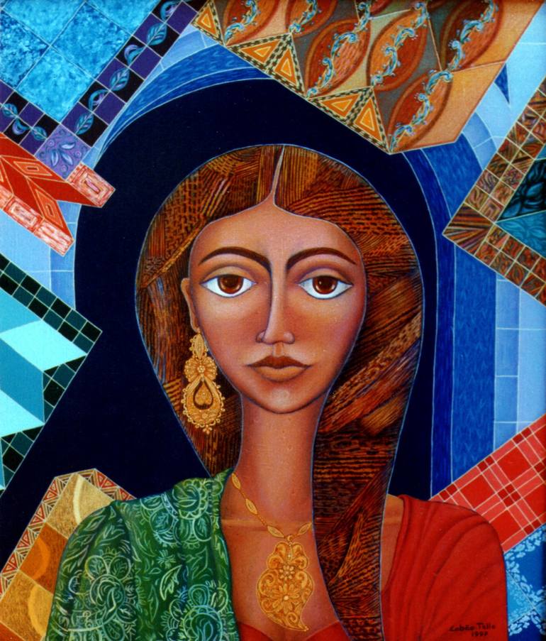 I am a Portuguese visual artist and I live in Chile.I have 3 children. I have had several individual and collective exhibitions throughout my life. I participated in the 1st Andiamericana Triennial of Art (1993) and I have exhibited twice at the Ralli Museum. I am a painting teacher at the Talagante Cultural Corporation and at the Peñaflor Space. I work in a great number of mediums, including oil, charcoal, watercolor, acrylic, pencil, photography and mixed media. My artwork can be found in many private collections across Portugal, France, Mozambique, Switzerland, Chile, Nicaragua, Argentina, Australia and England . - Latitude imposed - In me, there is also the spirit of the Portuguese sailors and adventurers. It all starts with the journey imposed from the old world, the colonial Portugal to Mozambique, in Africa, full of black ethnicity , magic, shapes, textures, lights and a fantastic colorful splendor .The distance between my dormant origins and the sudden awakening does not exhaust the endless question: Who am I? I experiment this fabulous latitude, mixing it with other lives, other pains, with the purity of color and pattern of tiles they call Mestiza . I built Attitudes from my Latitudes. In these Latitudes, I searched the jungle light seeds that populate my paintings and ceramics. In these Latitudes, I found the mestizo that inhabiting my works. My Latitudes and Attitudes and the mix of color and pain that confronted me during this precursor of life determine my pursuit of art within the human being, specifically in the Universe of Being a Woman. I am aware that in art, knowledge is to move, that art does not interpret, reveals, does not explain … shows the hidden side of the human being. What I paint is therefore a journey inside the mind … in the “doors and windows of the soul”, female territories of connection with Life and Divinity. These Latitudes, my attitudes and through Art I continued seeking the experiences of “Being a Woman”. Madalena Lobão –Tello Porto (Portugal ), 2001 Madalena Lobão-Tello◾My artwork can be found in many private collections across Portugal, France, Mozambique, Switzerland, Chile, Nicaragua and Argentina.