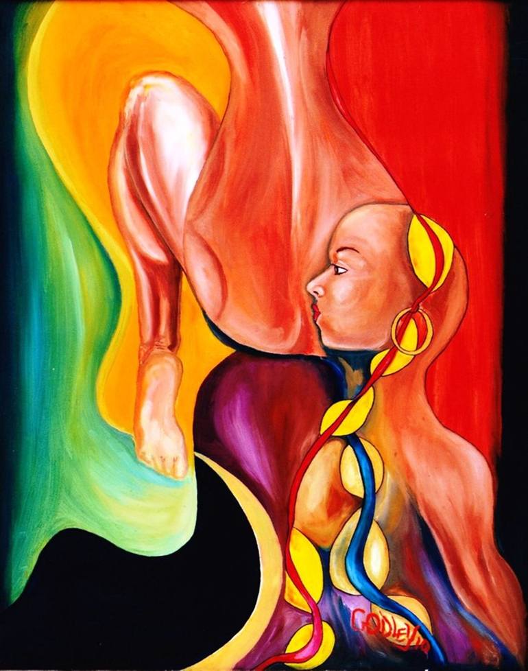 Original acrylic on canvas abstract painting of beautiful, nude women dancing to the truth of their self worth without the trappings of the world's perception of beauty.