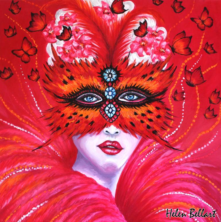 Original and unique piece of art painted by internacional artist Helen Bellart This artwork is spring feeling and I was inspired in carnival, butterflies and explosive colors.