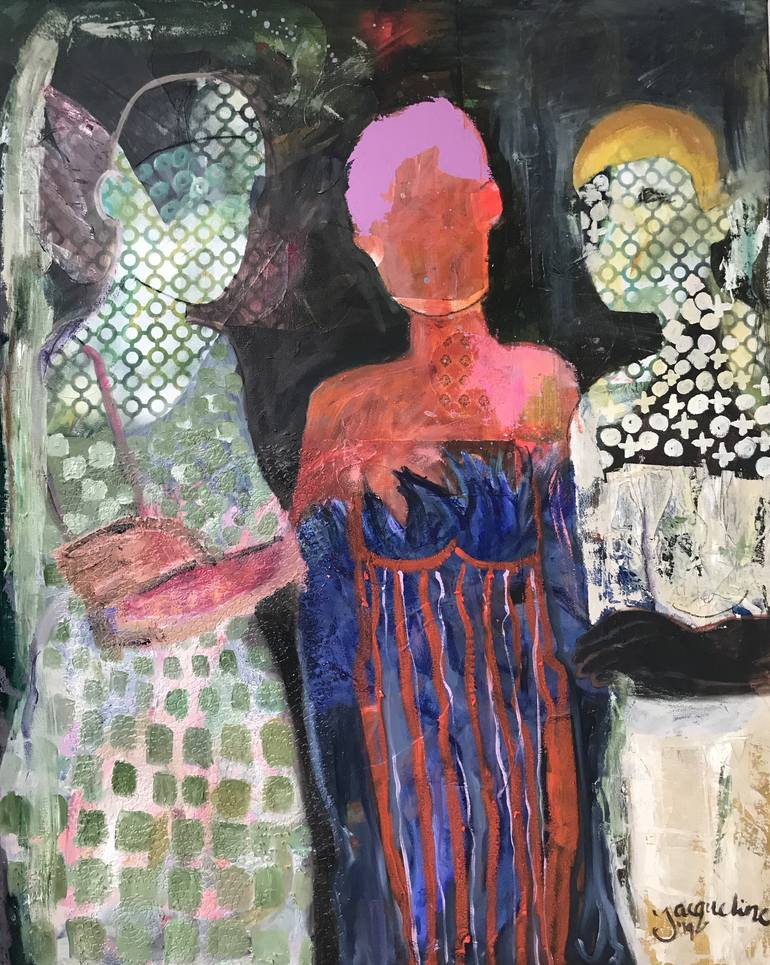 Jacqueline was born in Amsterdam, The Netherlands, in 1959. Already as a Child she liked to draw and paint. She studied Textile Design at the Gerrit Rietveld Art school, in Amsterdam, where she learned to work with a free spirit. Years later she started to take painting lessons and developed her own style. She is inspired by the impressionists like Matisse, Picasso and Bonnard and is often discovering new young artists who inspire her as well. Creating her art is a rather intuitive and discovering process. Her painting process starts with several layers of acrylic paint, collage of paper ore textile. Then gradually the composition evolves and women arise from the chaos of colors and shapes. The female body has become an important subject for her paintings, intending to show women powerful in a soft way. "I am on a journey to rediscover the source of woman’s power, the Feminine spirit". At the same time she is a colorist and decorative painter. Her art is only ready when it truly reflects her personality, mood and thoughts.