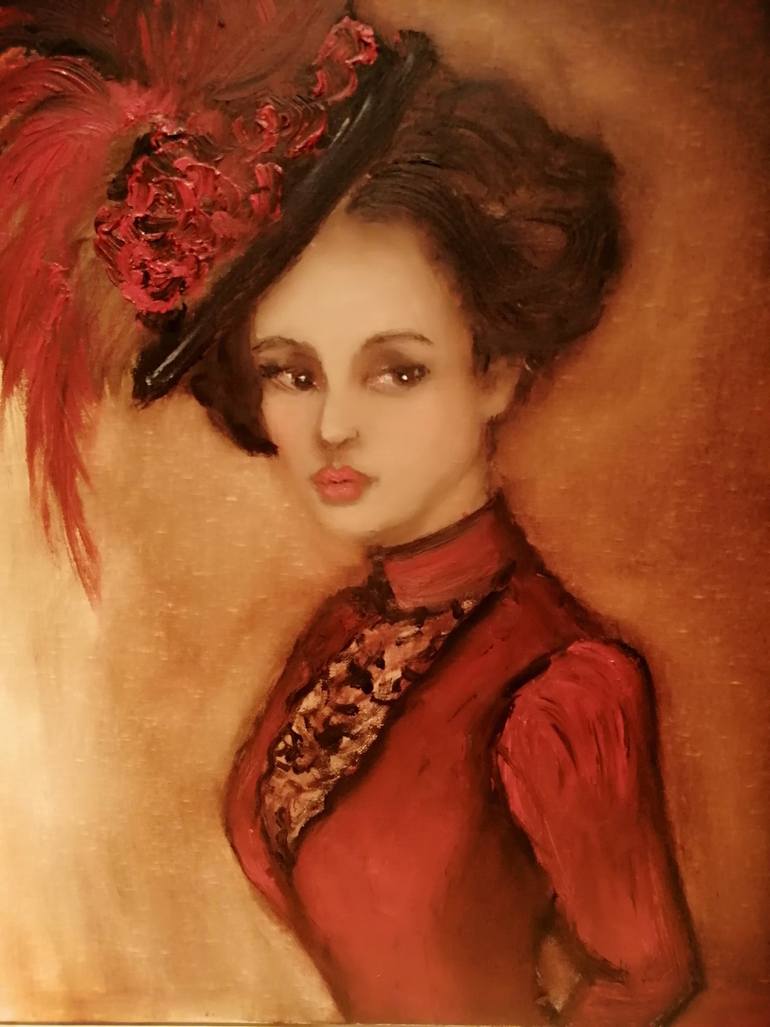 I paint women dressed in different historical costumes, but all protagonists look as if they were a little confused and not expressing their true feelings. They play perfectly imposed roles but they are not happy. Introspection is the source of original female feelings and is born the path of freedo...