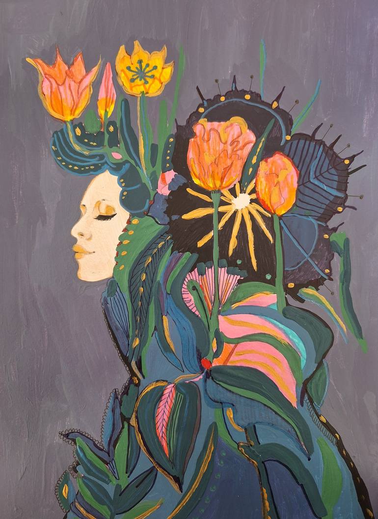 Acrylic, pencil and ink on acid free paper. This picture is a part of my botanical portrait series.