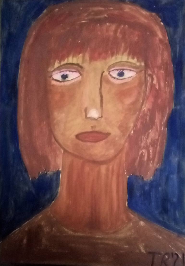 Watercolor on cardboard. Painting of a lady. On the other side is also picture but unrelated.