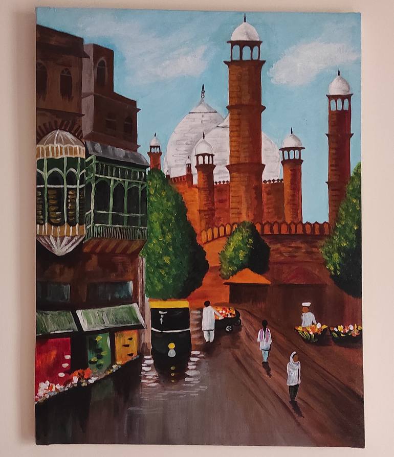 Pakistani artist have strong affiliation with Badshahi Mosque and I guess every artist attempts to draw any of its site to express his or her love for it.