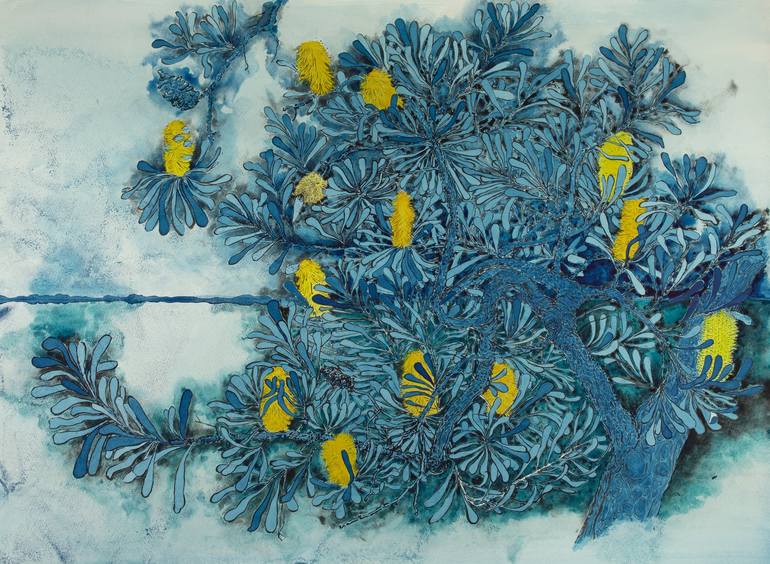 Walking along the high ridge of sand that forms the western edge of the red gum forest you see through the tree canopy to the lake that is defined by the far shore. I drew branches leaves and flowers that came away from the trunk with their bumpy bark textures, sweeping branches the end in spirals o...