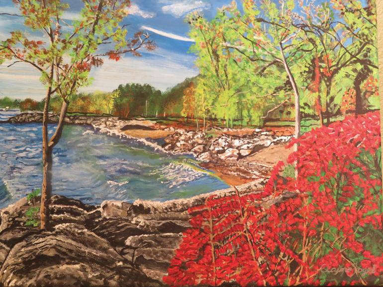 The reference photo for this painting by David Mark, sparked my love for nature images that include water, trees, and flowers. The fact that it’s Lake Ontario is a bonus, as I lived in Toronto (a city on the lake) for 30 years of my life. Original painting. Artist signed in the bottom right corner....