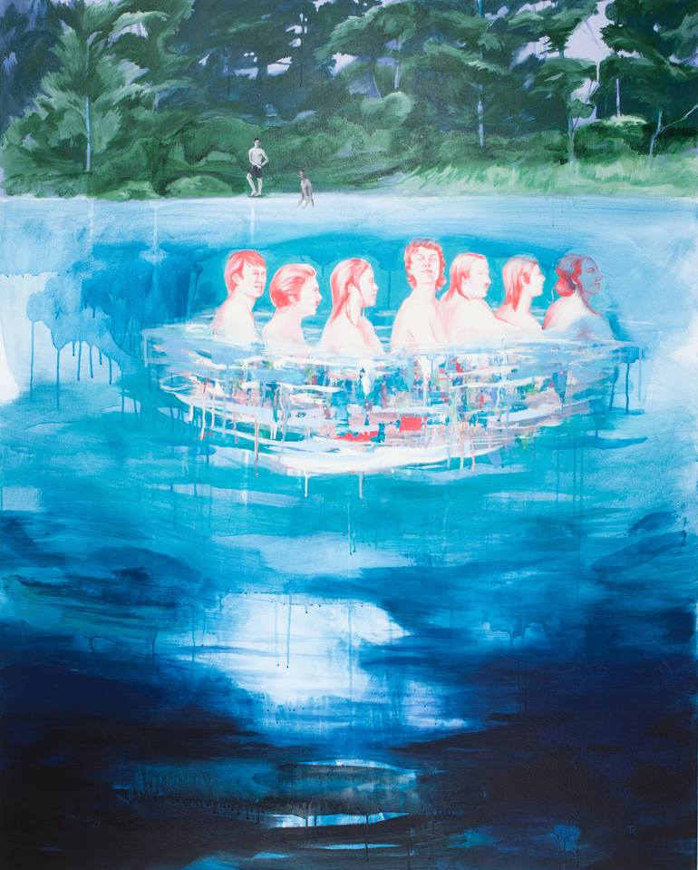 This is a painting about friendships and the feeling of freedom the water of the lake brings forward. The group of friends that stay connected if not day to day, then in everlasting memory and the experiences they shared together.