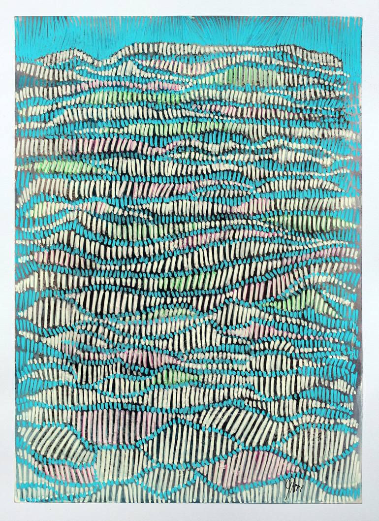 I wanted a landscape immersed in a clear and luminous blue, pastel-like colors. It's a peaceful image with slight ripples and the rhythm of the lines recalls a musical score. Good quality paper is the natural support for this kind of work.