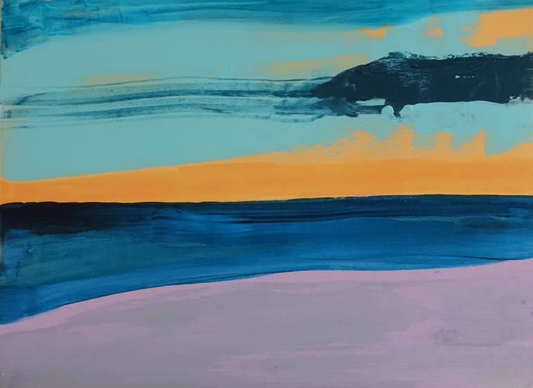 Original painting, one of a kind contemporary abstract landscape. These colours will brighten up your room! Acrylic paint on a wooden panel. You can put the panel down but it's also wired so you can hang it. It's easy to style in a little corner of collectables or in a gallery style wall cloud with...