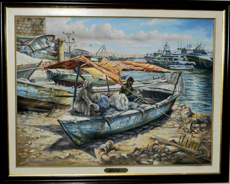A landscape from the Anfoushi area in Alexandria (Egypt), where the artist draws inspiration from these ancient places for the beauty that exists there and embodies it through drawing.