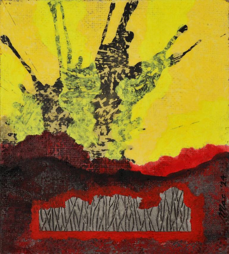 Gian Luigi Delpin is an italian painter, born in Tourin in 1962, lives and works in Asti. He works as a graphic designer for service companies and in the fashion industry. He began his activity as a painter in 1992. He collaborates extensively with paint manifactures in the luxury decoration sector as a creative consultant, working in sinergy with the laboratory technicians he acquires skills on the properties of the materials that he transfers to his painting by creating unique and personal technique, enhancing the materiality of the plaster he uses, creating bas-relief effects in compositions that work on thicknesses and contrasts ( matt / glossy, smooth / rough ). He builds the frames of the artworks by hand and mainly uses jute canvas as a support, treated is a very particular way. The art of Gian Luigi Delpin is inspired by his training as a graphic designer, by the language of visual comunication: trees, animals and oversized object are contaminated by pop and graphic suggestions, by the use of written as a symbol and form, in the creation of mental landscape that become almost abstract subject. My signature is Mac.