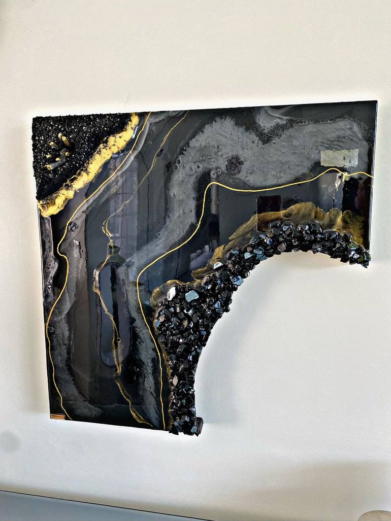 Original artwork Resin art Wood panel Crystal quartz and glass mirror stones