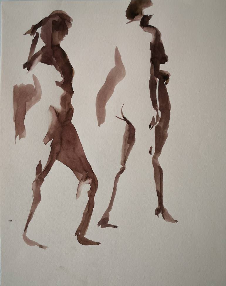 Watercolor on Canson mi-teintes archival quality paper. Belongs to a series done in a live model session, my favourite way of studying the human body. These poses vary in time , from 5 seconds to 20 minutes.