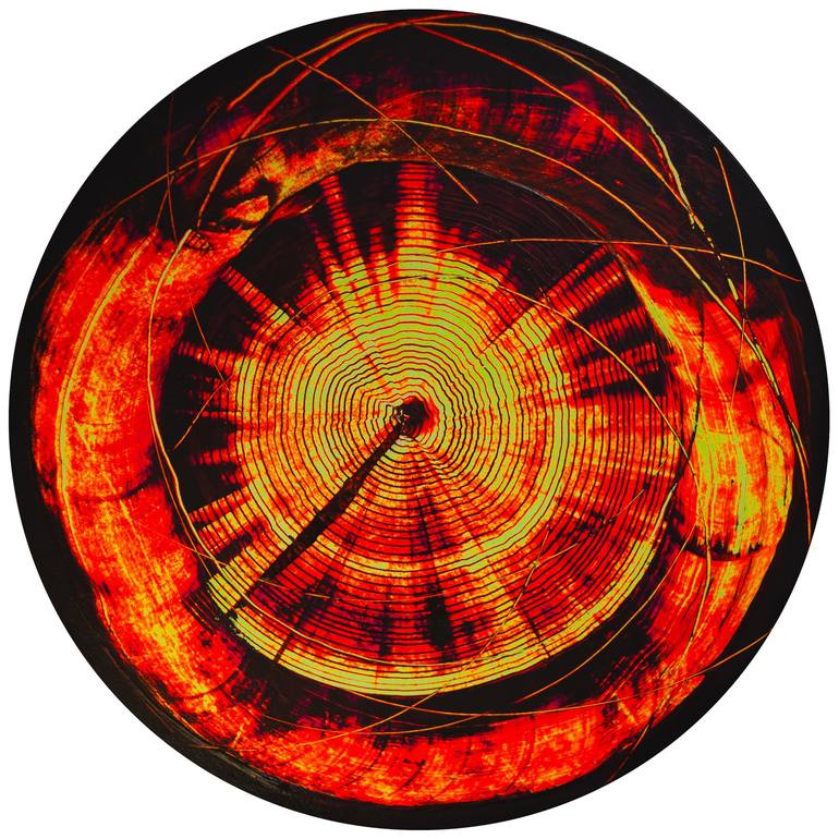 Artwork from lava series. This is an original spray paint painting on canvas. Got inspired by contrast overflow of fluor colors and black. Photo format can't display the real color shades of fluor, in real life it look much more bright. Could shine in ultraviolet.
