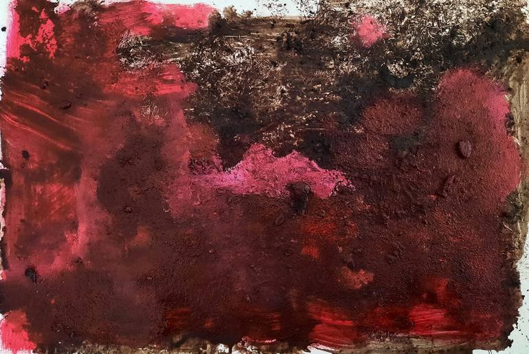 Mixed Media on unstretched canvas representing the calmness and the power of lava