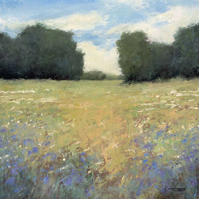 Lavender Field 230127 Oils on panel 12x12 inches Lavender Field 230127 is a bright colorful impressionist landscape painting. Painted in oils, this painting is 12x12 inches with lots of nice texture and rich colors. This contemporary landscape painting has bright colors. This piece is on 1/8 inch c...