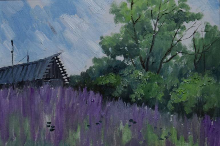 Lavender and Trees Under Blue Skies Painting