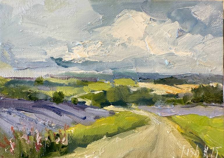 French Country Oil Painting - Lavender Landscape Mini Canvas Art Each piece is hand-painted with oil paints, using brushes and a palette knife to create rich textures and shades. All artworks in my store are originals, not prints or illustrations. IMPORTANT: Frame not included (photos show an exa...