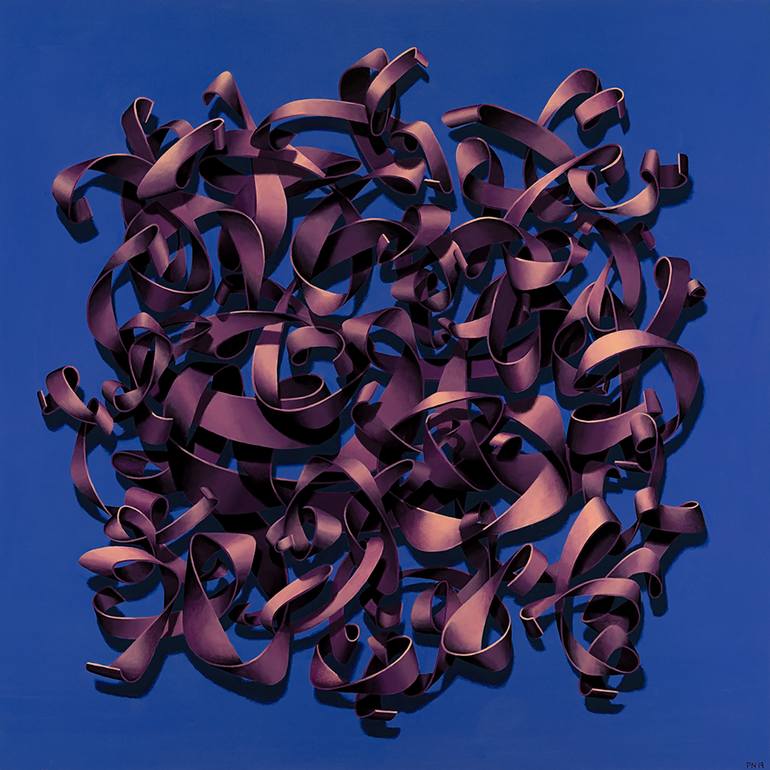 I mainly paint ribbons that are often, but not always, knotted in some way. What I find most interesting about this format is what the paintings can suggest about the ways we navigate our own entanglements. For instance, one painting might look dense and complex, with an overwhelming number of twist...