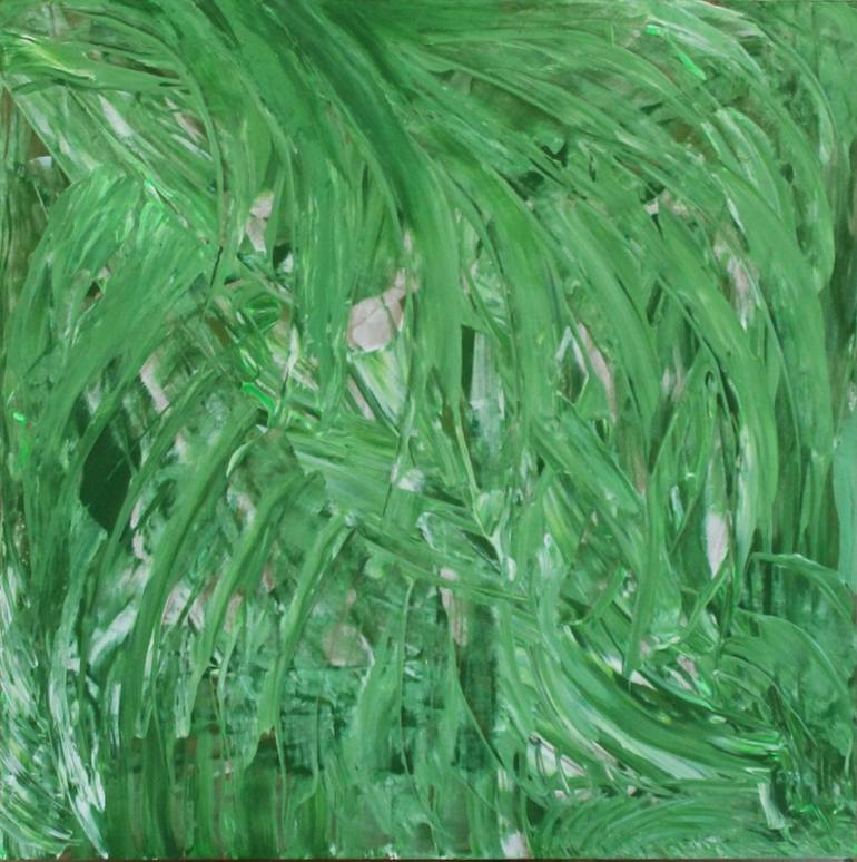The inspiration for this painting is the way plants of all kinds find their way around and through each other when left to their natural 'wild' ways. How light and the Sun create such variation of tone and depth of colour, forming a canopy and tropical effect which allows for other ground dwelling l...
