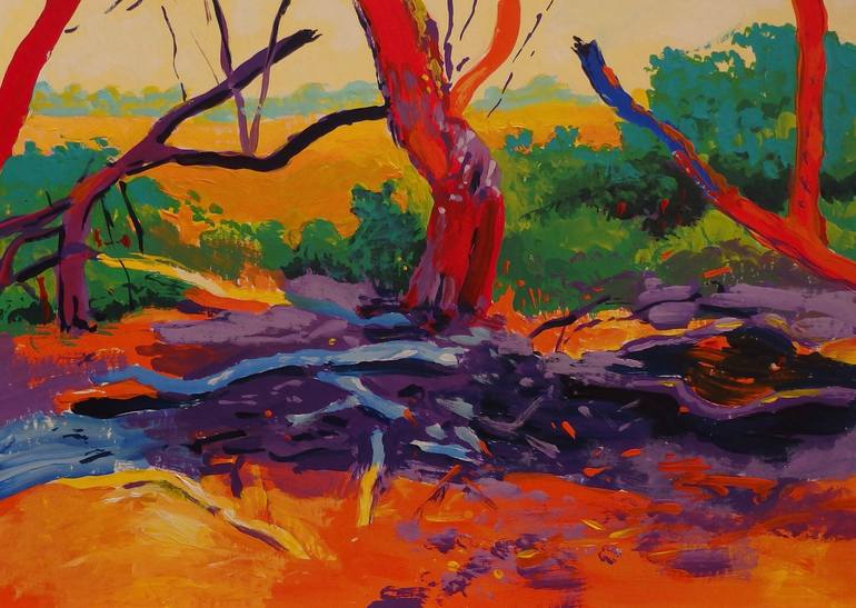 I am absolutely in awe of the beauty in Australian flora. The complexity and variety of plant life intermixed with the vibrancy of colours is an ideal opportunity for me to apply an observation technique to colours in nature. I learned this technique while studying at the Lodz Academy of Arts. The technique is based on seeing colour through an opposite and contrasting colour. The result is that colours boost each other, creating a dynamic display. My paintings are the result of three factors: what I see in nature, what I know about colours in nature, and what works best for the unique depiction in every painting. The ‘air perspective’ in my paintings, which exists in nature, is also a result of observation. The warm colours in first plan and colder colours in remount parts of landscape create a perception of space and distance. Observation of colours in nature is my great passion and underlies my desire for painting.