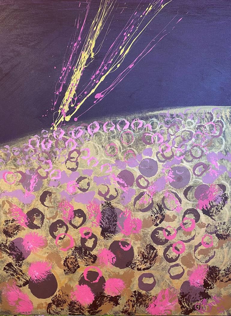 Always looking for unusual and beautiful effects during my travels, I am an abstract landscape painter who revisits the same images for long periods. In this series, I am fascinated by mysterious grassy formations called “fairy circles” found in remote areas of Namibia. For an abstract landscape pa...