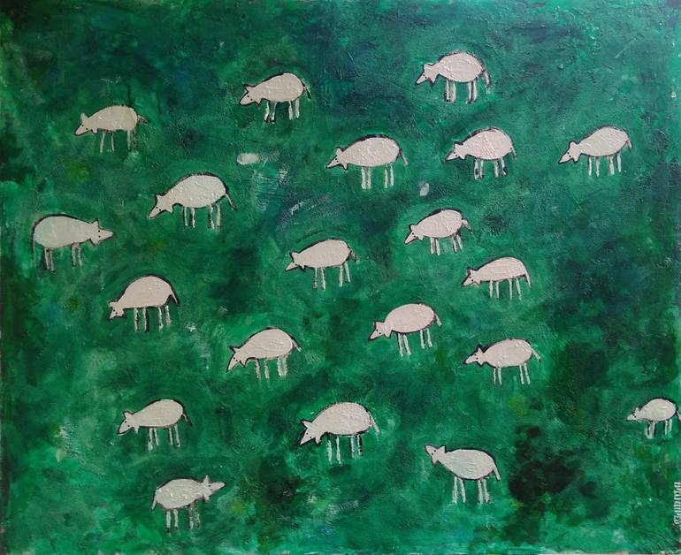 I was born in Rome in 1965. My father, Sandro Lodolo, was a creative, graphic designer and director of television spots and themes, my mother, Isabella Fedeli, was a pop singer for RAI in the 60's. Graduated in scenic design at the Academy of Fine Arts in Rome, I started working in 1985 with my father, owner of Lodolofilm that from 1958 to 1968 had as a collaborator, the artist Pino Pascali on which, in 2012 I published the monograph "32 anni di vita circa. Pino Pascali raccontato da amici e collaboratori" (32 years of life, about. Pino Pascali told by friends and co-workers) (Carlo Cambi Editore, Poggibonsi). I always painted preferring conceptual themes with a style that remembers the "Scuola di Piazza del Popolo" to which belonged Pino Pascali, Mario Schifano, Franco Angeli and Tano Festa. Since some years I have concentrated my work on what I call "flocks": sheep and cars in traffic. The first, sheep, is a "good", white, natural flock; the second, cars, is an ugly, dirty, polluting "flock". The contrast between the "civilization" that advances with asphalt steps, and nature, more and more intimidated and limited in small non-urbanized areas, is the concept contained in my artistic production, through which I ask if the sheep are really more stupid, like the saying goes, then the humans who bury hectares of greenery under expanses of asphalt and concrete. About fifteen yeras ago, I moved from Rome to the countryside to have more space, sunset view from my windows and a direct contact with nature.