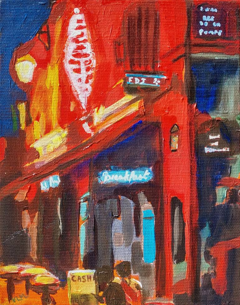 Figurative Parisian painter capturing the soul of Urban Scenes. The Other Art Fair London Oct.2025 Member of society of SALON D'AUTOMNE Paris Member of the Taylor Foundation, Paris Feb. 2025 PARIS : Grand Palais (Salon Comparaisons) Oct. 2025: LONDON: THE OTHER ART FAIR March 2023 : LONDON :THE OTHER ART FAIR August 2023: TOKYO ART CENTER, JAPAN Born in the outskirts of Paris. I live and work in Paris suburbs. Living in a big city for half my life has influenced my work. I have a fascination for cities: noisy, overwhelming and lively, yet hiding people loneliness. I paint mostly urban landscapes: the interiors (shops, cafe, theatre house) full of details and colourful with very few details for the people: they are just part of the scenery. I’ve worked for the theatre for ten years and that experience gave me a love of colours, of framing my subject a certain way. I’m not looking for the exact repliqua of the reality but for an emotion I want to convey in my paintings through colors. My work is made of lots of layers of acrylic on a canvas, quick rough brush strokes and vivid colours. I use acrylic because it’s a medium that corresponds to my character: I’m impatient and this material suits me for it allows my painting a speed, a raw aspect, sometimes violent; I work in a kind of urgency. PRIVATE COLLECTIONS: France, Switzerland, USA PUBLIC COLLECTIONS: City of G... France 2021 ARTIST’s RATING « Artprice » (Auction MAISON ROUILLAC ; 2020).