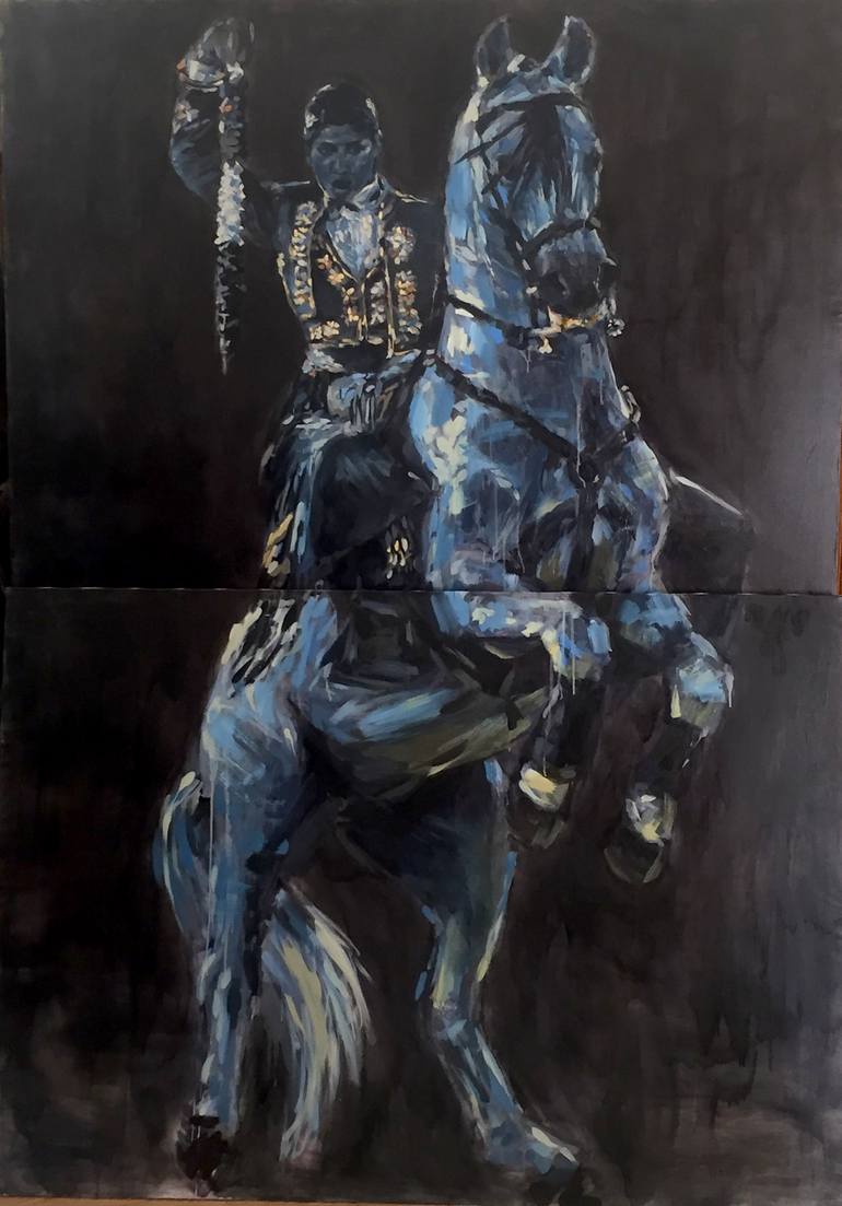 This is a portrait of the famous horse rider Lea Vicens. She is a master in "Rejoneo" which is a unique form of horsemanship that takes place in Spain especially in the South. I painted this painting in her honor and she kindly took a picture with me in front of the painting when it was shown The Pu...