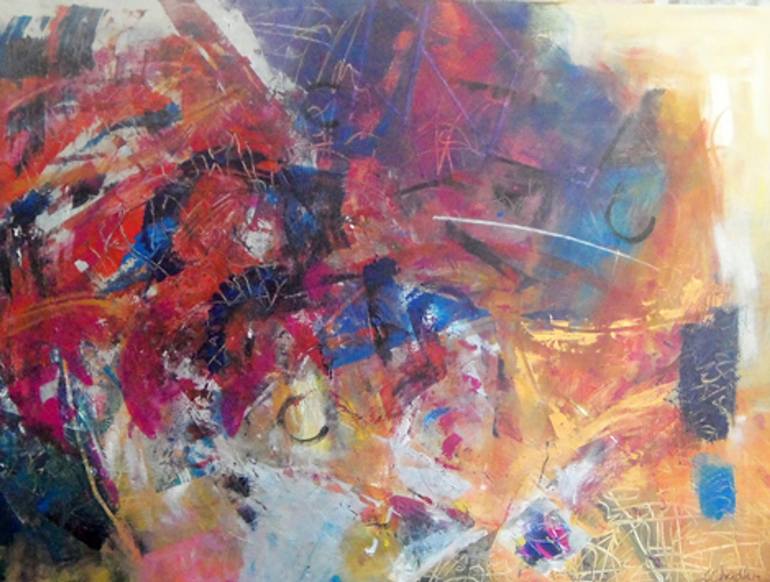 Original acrylic depicting the power of facing life's overwhelming obstacles and challenges. By utilizing bright colors, contemporary design and movement, an air of courage and unbridled confidence is presented.