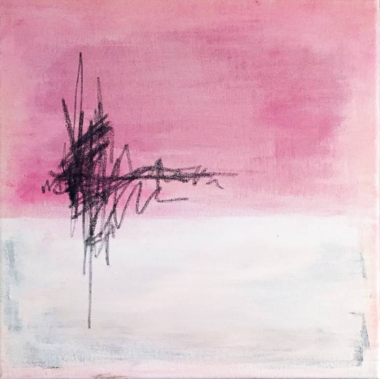 It is rough being small. Adorably pink and white hued, this painting has had enough. A fizzle of irritation scribbles through, an erratic heartbeat, or a demand to be taken seriously. Either way, it pops on the wall, spunky and a little different. Matte finish, hanging hardware not included.